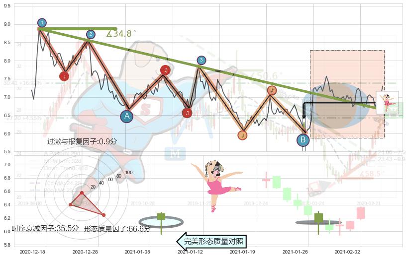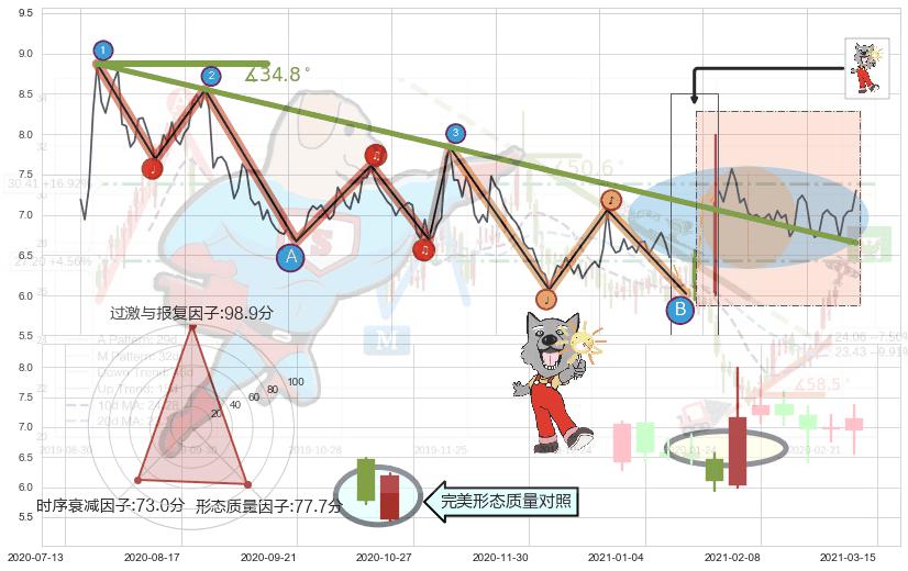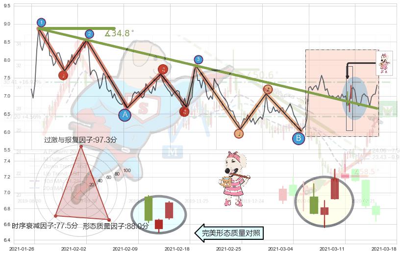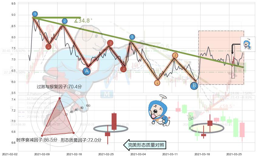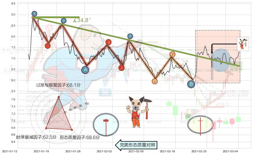 ➢ 2020-07-06-2021-02-11下跌趋势存在反转上涨[机会],其原下跌趋势的阻力位(6.65)已被突破[强支撑信号],原下跌趋势角度: 34.8˚