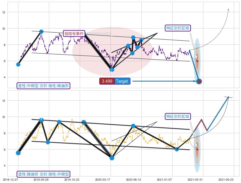 ➢ 升楔型属【短级别信号事件】降旗形属【长级别信号事件】长短周期组合信号事件, 短长事件长度比33.93%