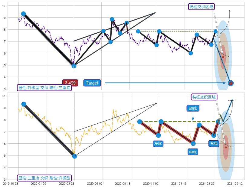 ➣ 早晨之星(黎明之星) + 升楔型临近target支撑拐点上涨信号叠加后【目标达成率】极低,【看多】信号叠加【存续影响极大】