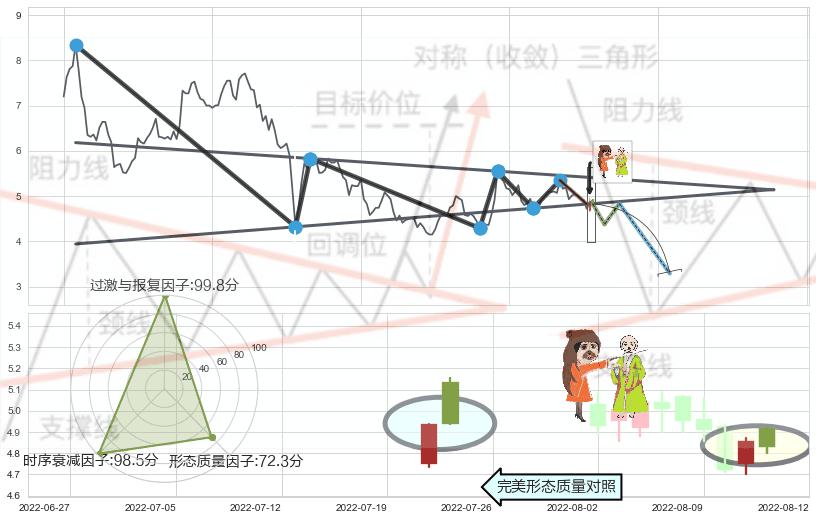 ➢ 【卖1】: 激进型 卖点→(2022-08-10: 4.82 )形成突破下降【对称】三角形整理【整理】形态