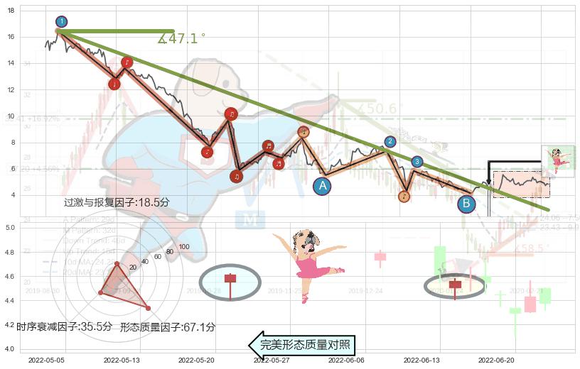 从2021-03-16至2022-06-27,共包含314个交易日,阶段股价下跌-99.25%,阶段股价变动位移路程比: 1 : 7,下跌趋势角度: 47.1