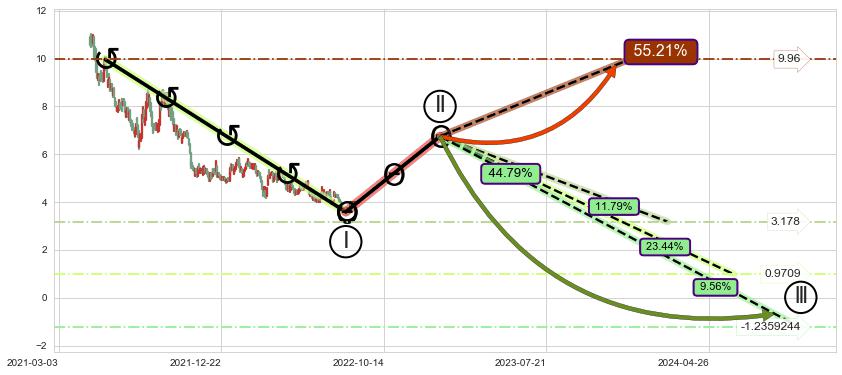 ➢ 循环浪继续向下【最低】位置(2024-10-01, -1.2359244),匹配聚类样本比例21.35%, 可能性概率9.56%