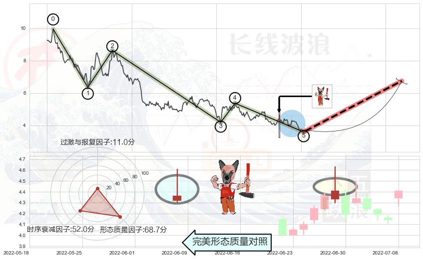 ➣ 锤头线(锤子线) + 波浪理论下跌浪:浪5反弹拐点信号叠加后【反向回撤率】偏高,【看多】信号叠加【存续影响降权】