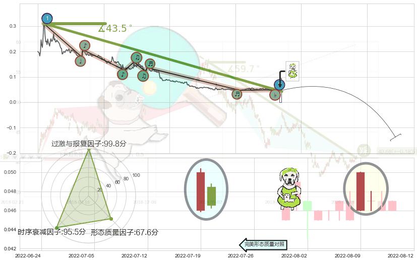 🦴 长线均值回复组合短线趋势跟踪[强阻力信号]2021-01-25-2022-08-12下跌趋势依然成立(下跌趋势跟踪依然存在),短线价格略微上行反弹(均值回复猜想),即将接近下跌趋势提供的未破位阻力价格:0.0423456。