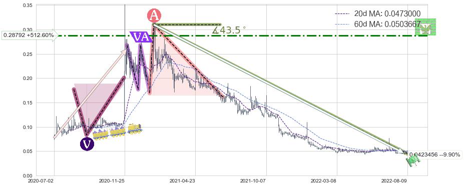 ♘ 在最后的下跌阶段2021-01-25至2022-08-12,存在 破位边缘的阻力位 ,阻力价格0.0423456,可信任强度78.85%,其距离最后价格0.0470000相差 -9.90%