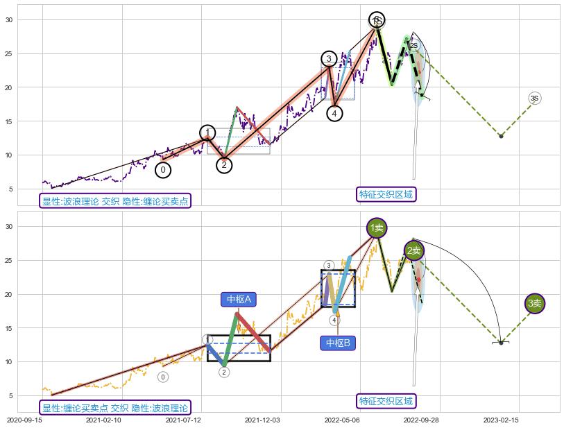 ➣ 缠论买卖点:上升缠:猜想2卖趋势延续,蓄力下跌至3卖(大周期趋势均值回复中的小周期趋势跟踪)