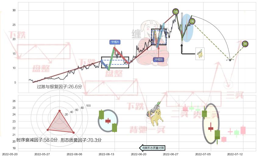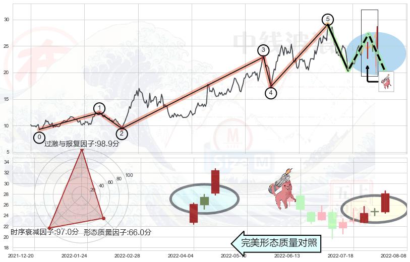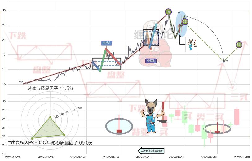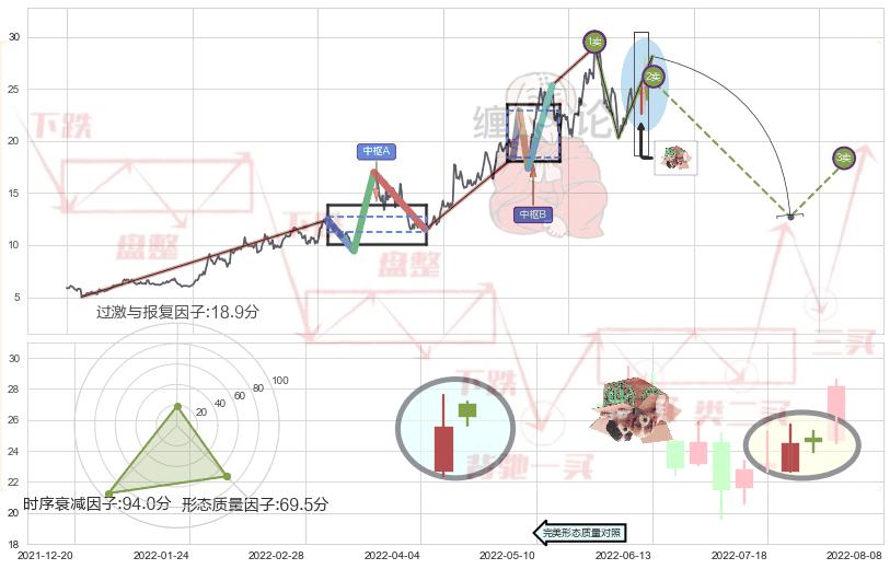 ➢ 🕰 价格走势在2022-07-25至2022-08-01期间形成顶部尽头线(下山虎),残存影响值:-2.49