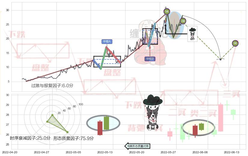 ➢ 波浪理论上涨浪:浪5回调拐点 🔜 缠论买卖点2卖回调下跌至3卖 综合量化分数:42.95 【偏空】