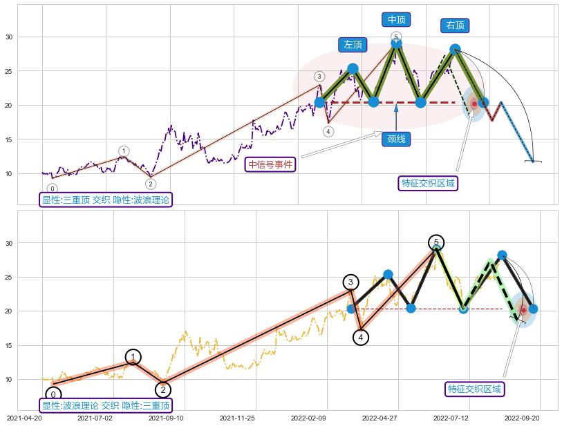 ➢ 三重顶属【短级别信号事件】波浪理论属【长级别信号事件】长短周期组合信号事件, 短长事件长度比34.04%