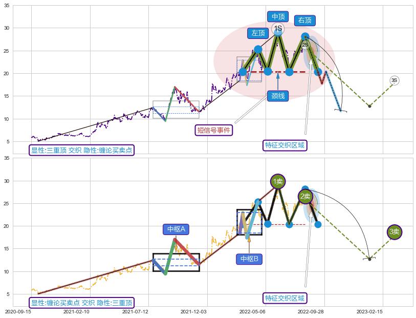 ➣ 缠论买卖点:猜想2卖持续蓄力下跌至3卖 → 下跌 → 风险信号 → 小趋势跟踪