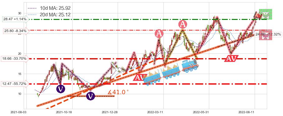 ♘ 支撑价格位25.80,可信任强度53.79%,距离最后交易2022-08-12形成的收盘价格28.15相差 -8.34%