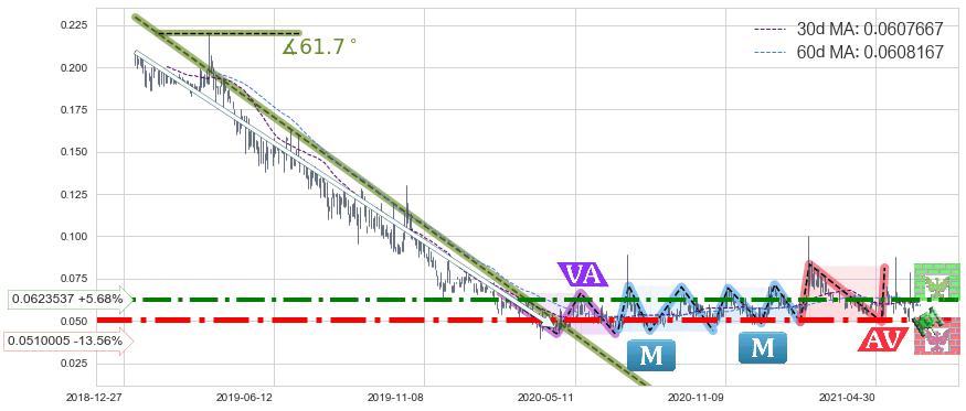 ➣ D点拟合预测价格0.0366400,距离最后交易收盘价格0.0590000相差 -37.90%