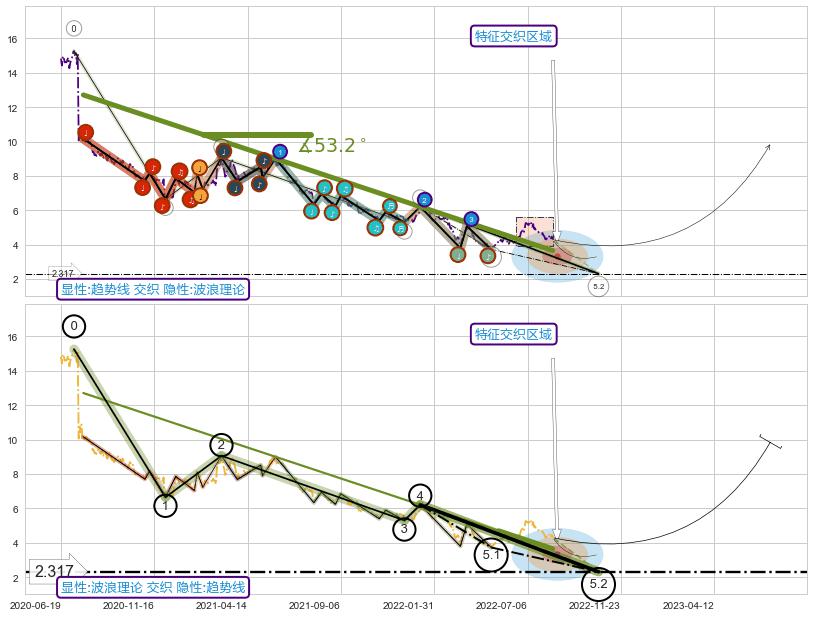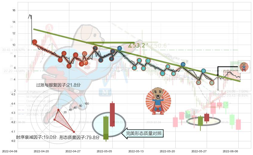 ➣ 2020-07-27-2022-05-20下跌趋势存在反转上涨[机会],其原下跌趋势的阻力位(3.654)已被突破[强支撑信号],原下跌趋势角度: 53.2˚