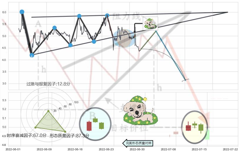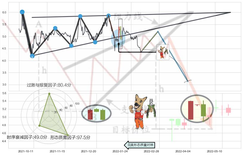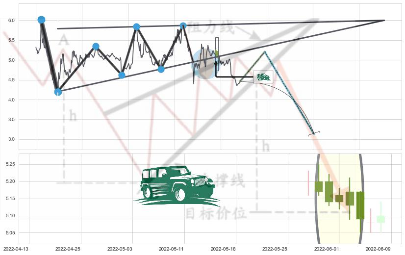 ➢ 【卖1】: 激进型 卖点→(2022-03-14: 4.95 )形成突破升🚩楔型【整理】形态