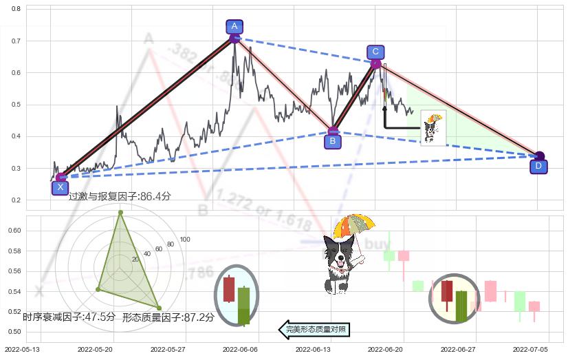 ➣ D点拟合预测价格0.33703,距离最后交易收盘价格0.48000相差 -29.79%