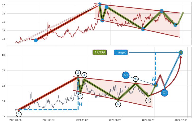 ➣ 最小中继整理跌幅→𝐇: 0.235000 (𝐇旗杆的长度:旗杆起点→顶点)