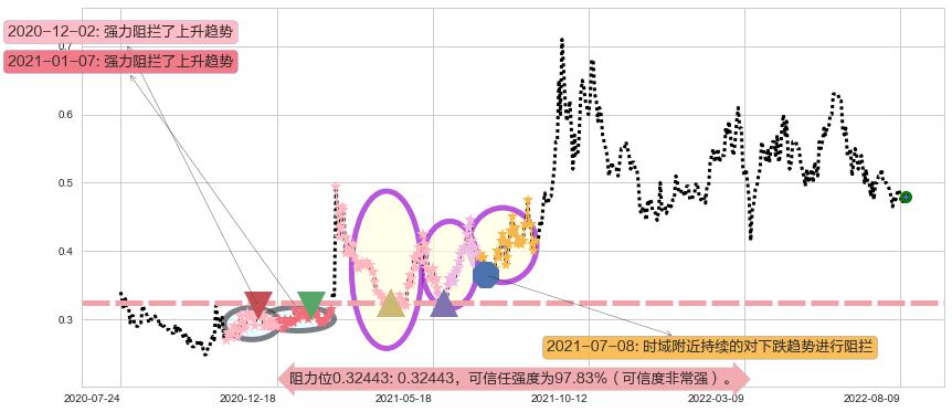 ♘ 支撑价格位0.32443,可信任强度97.83%,距离最后交易2022-08-12形成的收盘价格0.48000相差 -32.41%