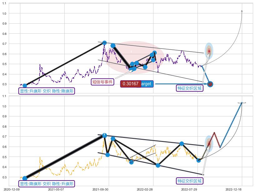 ➣ 升旗形:猜想下跌target达成后 → 上涨 → 机会信号 → 大趋势均值回复