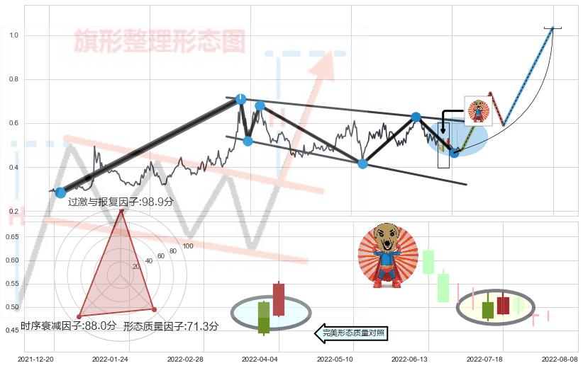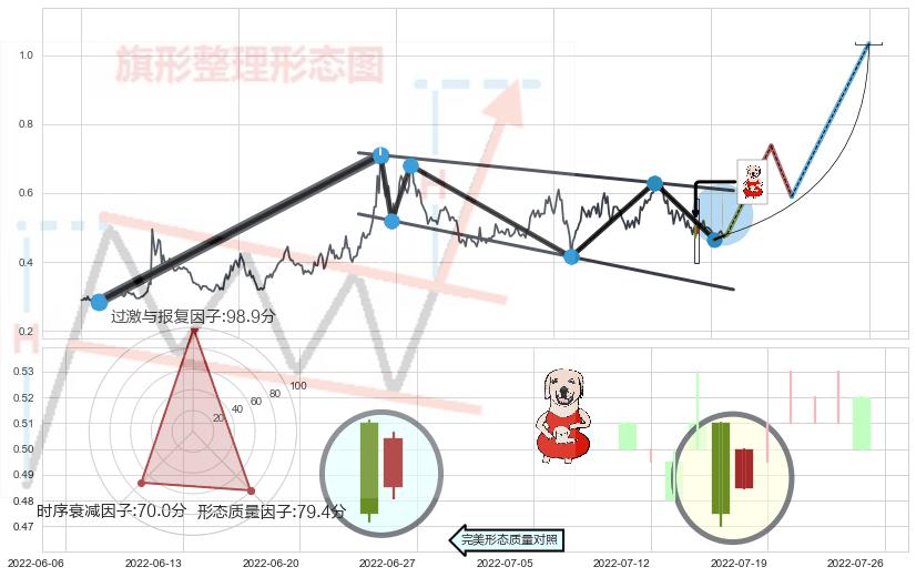➣ 【未确认突破,预测即将形成突破】下降三角形整理起点:2022-06-08, 预测突破点:2022-08-16,形态共49交易日
