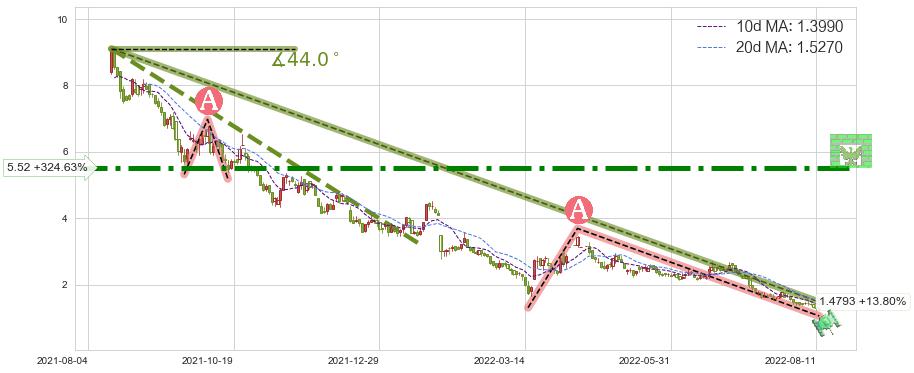 ♘ 阻力价格位5.52,可信任强度90.83%,距离最后交易2022-08-12形成的收盘价格1.3000相差 +324.63%