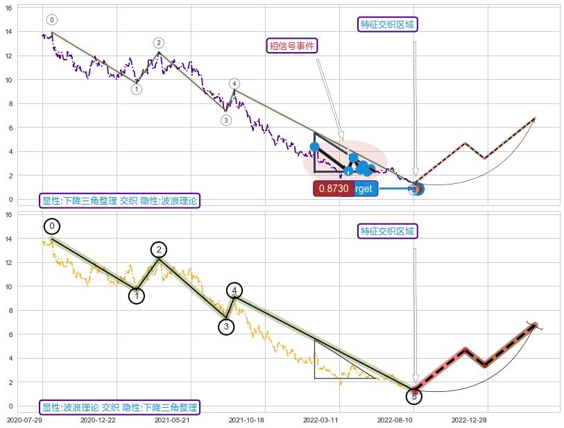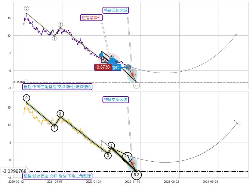 ➢ 下降三角整理属【短级别信号事件】波浪理论属【长级别信号事件】长短周期组合信号事件, 短长事件长度比16.73%