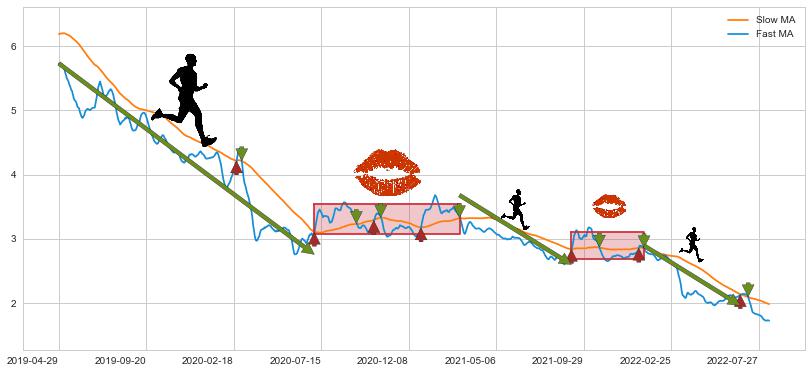 2022-01-10至2022-06-27 慢线与快线呈空头排列, 慢线与快线接触少,无缠绕