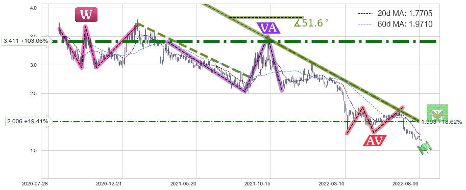 ♘ 阻力价格位2.006,可信任强度44.08%,距离最后交易2022-08-12形成的收盘价格1.6800相差 +19.41%