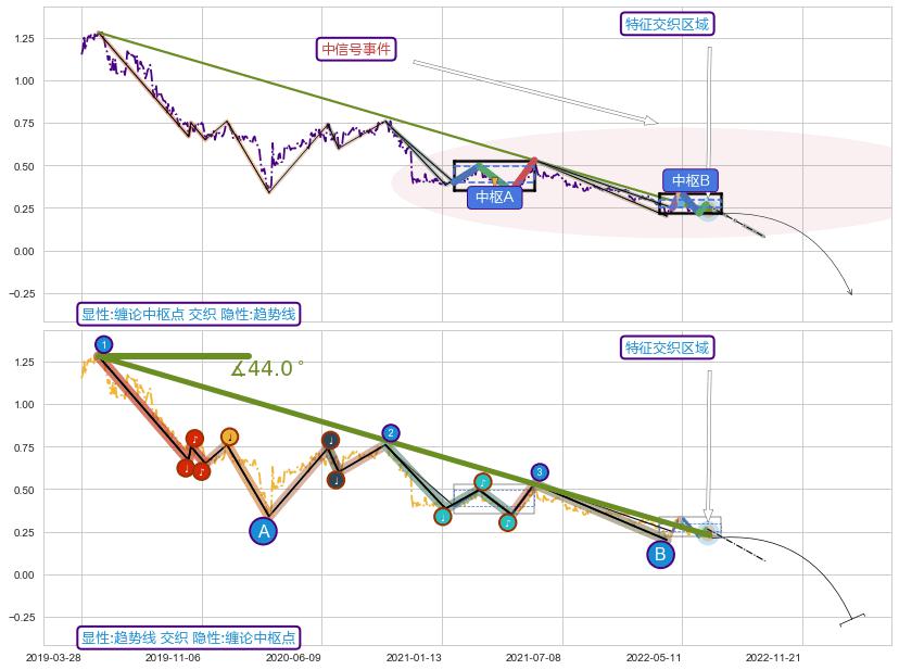 ➢ 缠论中枢点属【中级别信号事件】趋势线属【长级别信号事件】中长周期组合信号事件,中长事件长度比52.78%