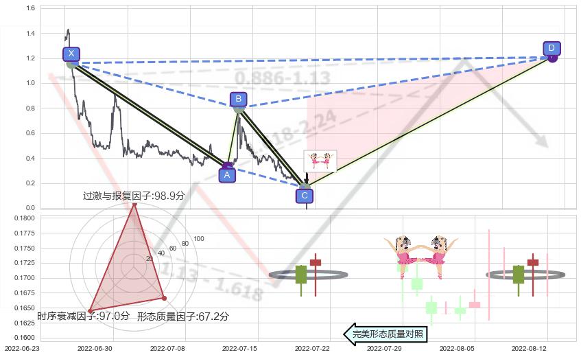 ➢ 双针探底 🔜 谐波鲨鱼下沉击穿c上涨拐点 综合量化分数:51.13 【中性】