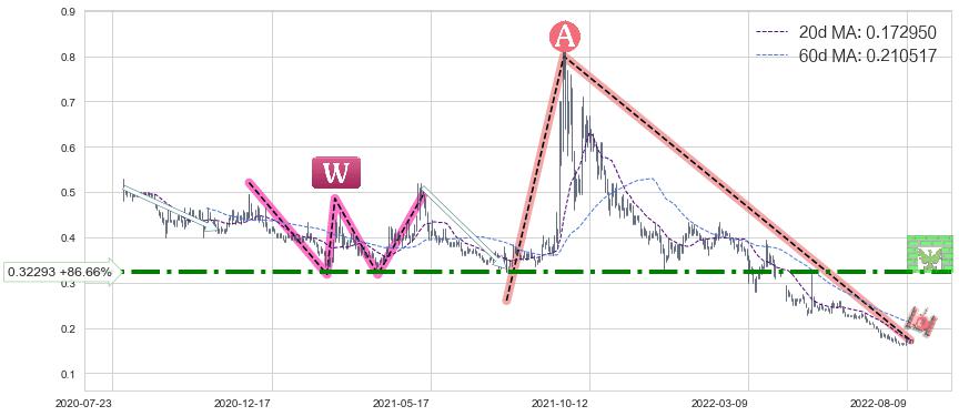 ♘ 阻力价格位0.32293,可信任强度83.87%,距离最后交易2022-08-12形成的收盘价格0.173000相差 +86.66%