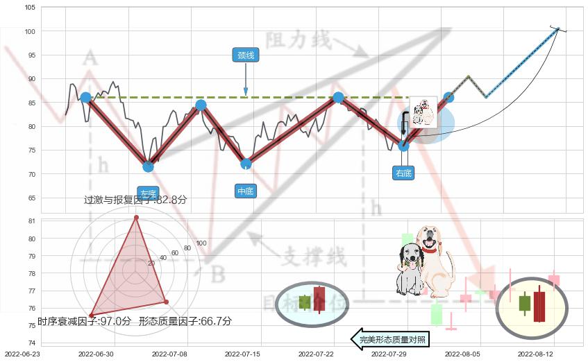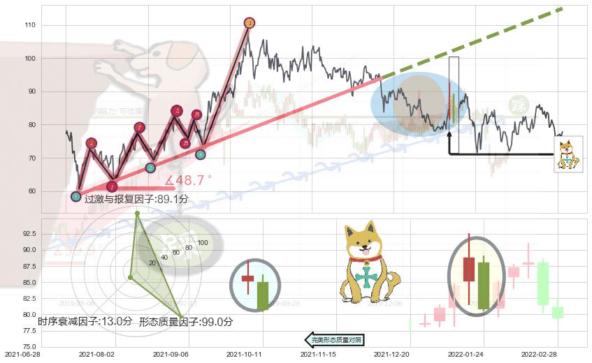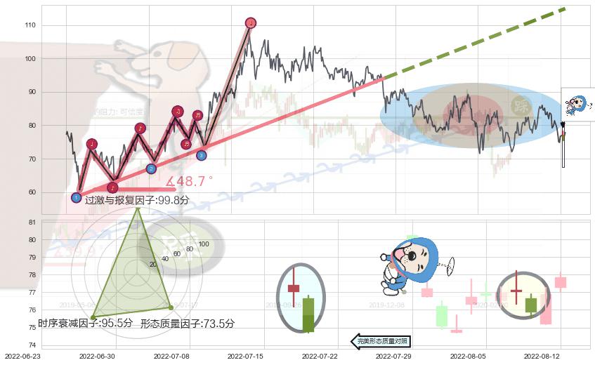 ♘ 阻力价格位91.37,可信任强度87.68%,距离最后交易2022-08-12形成的收盘价格77.85相差 +17.37%
