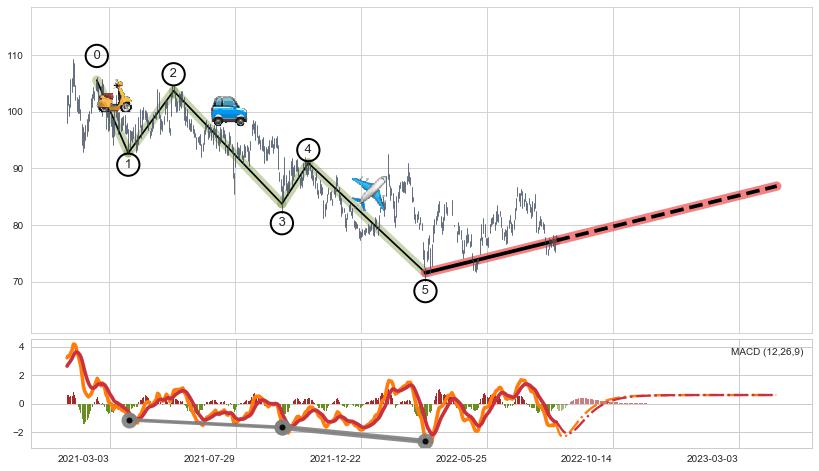 ➣ 波浪理论:猜想止跌 → 上涨 →【拐点】浪5已完成 → 大趋势均值回复