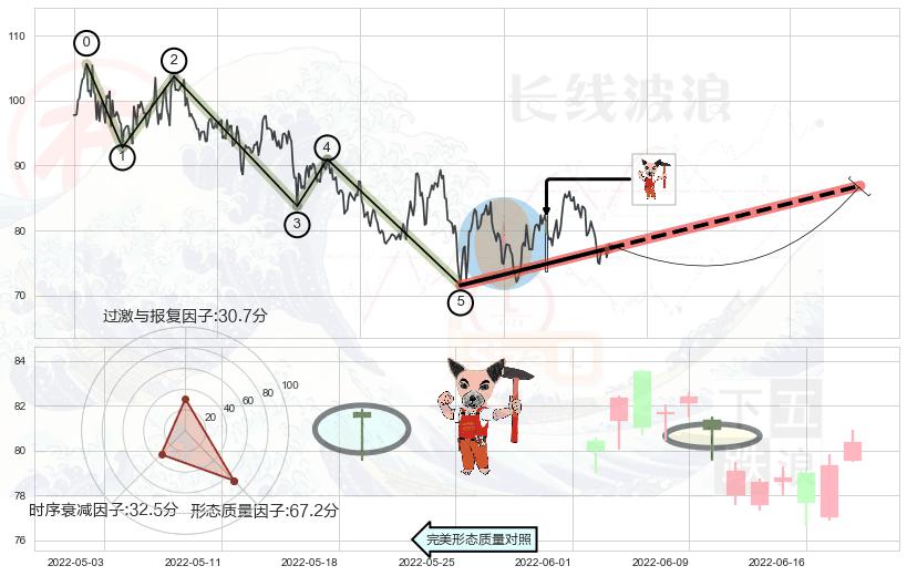 ➢ 🕰 价格走势在2022-06-01至2022-06-06期间形成早晨之星(黎明之星),残存影响值:2.50