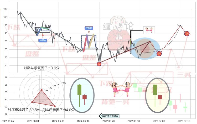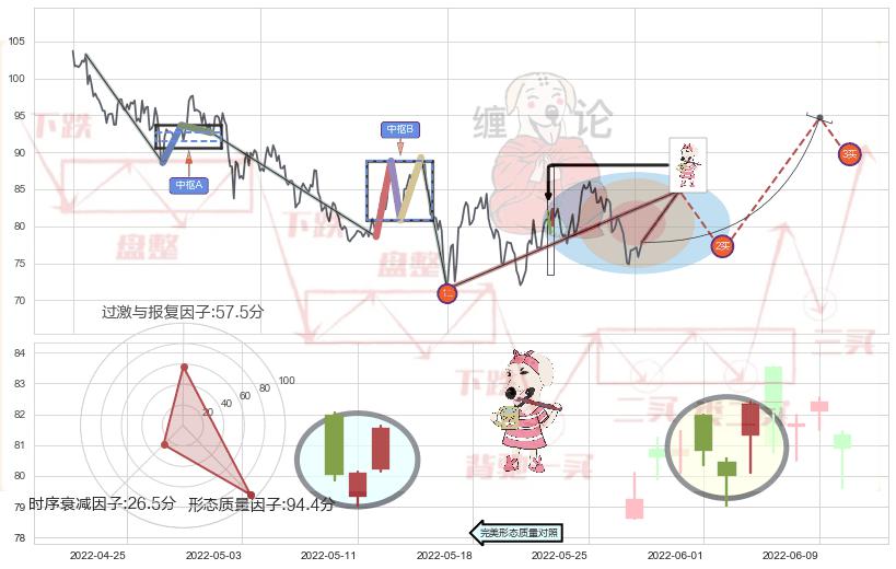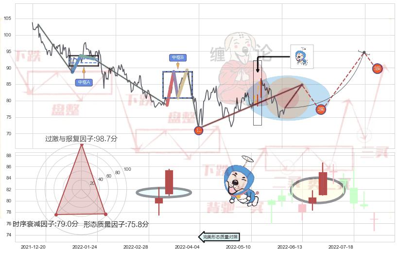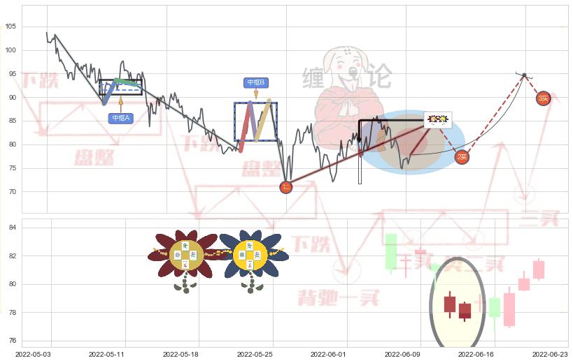 ➣ 【中枢B】:2022-01-11-2022-02-17,中枢由4笔构成,共25交易日, ZG=88.80, ZD=80.85