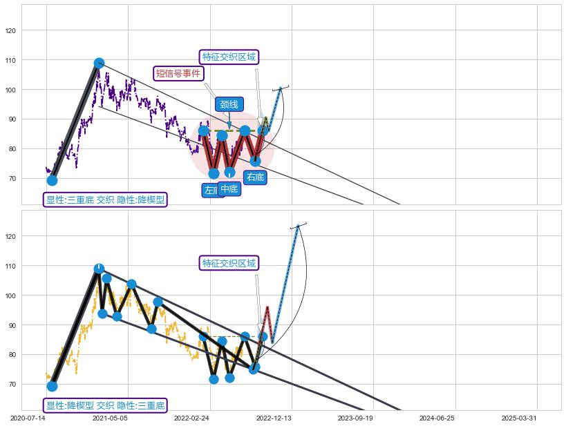 ➢ 三重底属【短级别信号事件】降楔型属【长级别信号事件】长短周期组合信号事件, 短长事件长度比27.00%