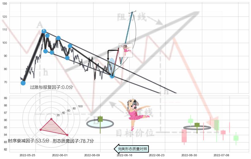 ➢ 早晨之星(黎明之星) 🔜 降楔型临近阻力猜想转换支撑上涨 综合量化分数:54.78 【偏多】