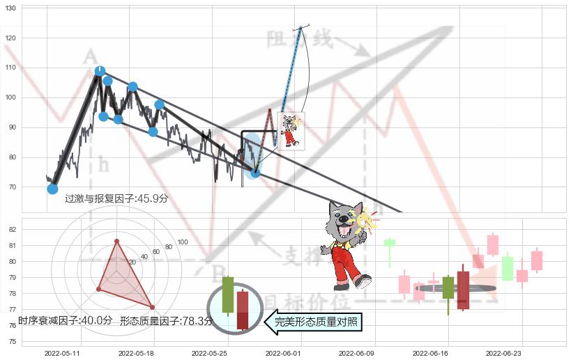 ➢ 看跌(高位倒锤头)流星线 🔜 趋势线支撑位已破位下跌 综合量化分数:46.08 【偏空】