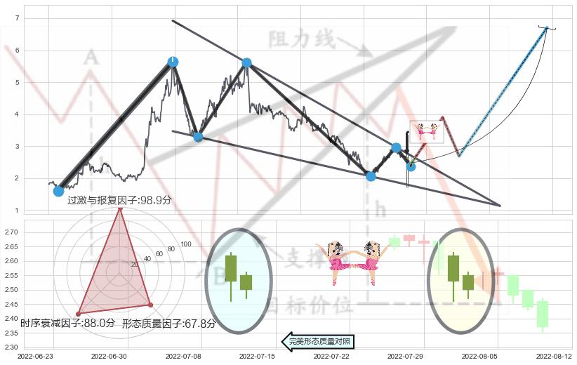 ➢ 🕰 价格走势在2022-08-02至2022-08-03期间形成双针探底,残存影响值:4.75
