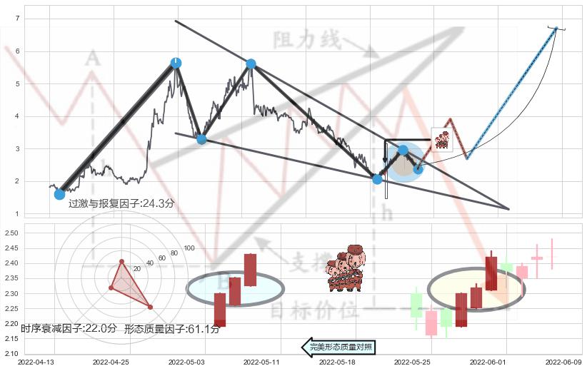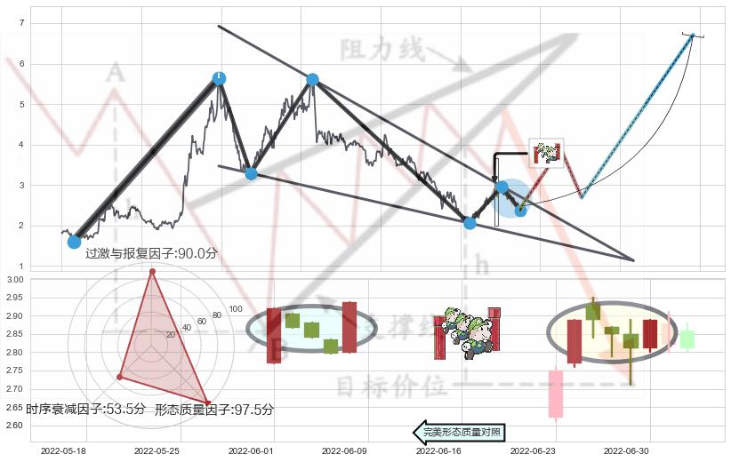 ➢ 🕰 价格走势在2022-06-24至2022-06-30期间形成上升三部曲(升势三鸦),残存影响值:3.86