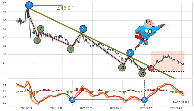 ➢ 最后的下跌趋势2021-07-19至2022-06-23:存在突破迹象,后续小反弹或者反转上涨