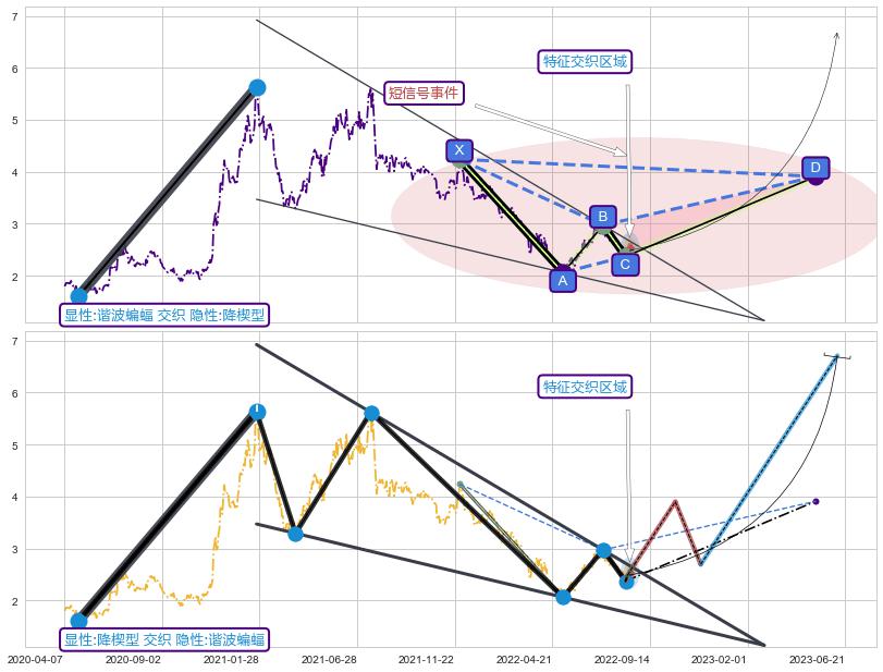 ➢ 谐波蝙蝠属【短级别信号事件】降楔型属【长级别信号事件】长短周期组合信号事件, 短长事件长度比30.73%