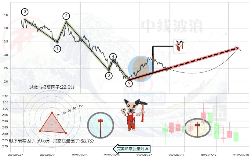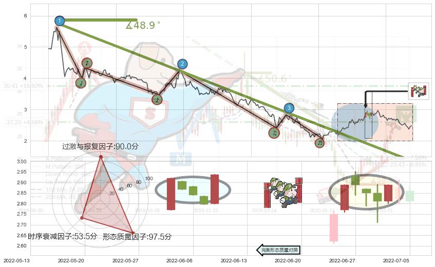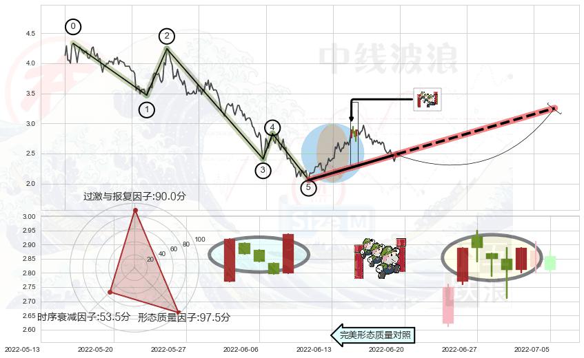 ➢ 🕰 价格走势在2022-06-24至2022-06-30期间形成上升三部曲(升势三鸦),残存影响值:3.86