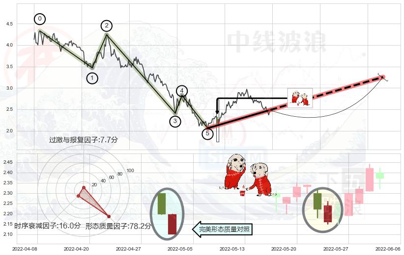 ➢ 趋势线阻力位已击穿上涨 🔜 波浪理论下跌浪:浪5反弹拐点 综合量化分数:54.48 【偏多】