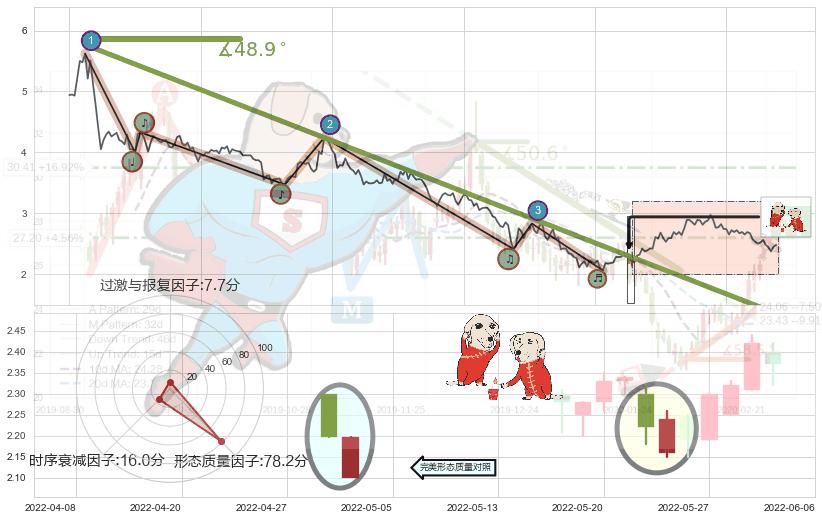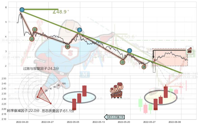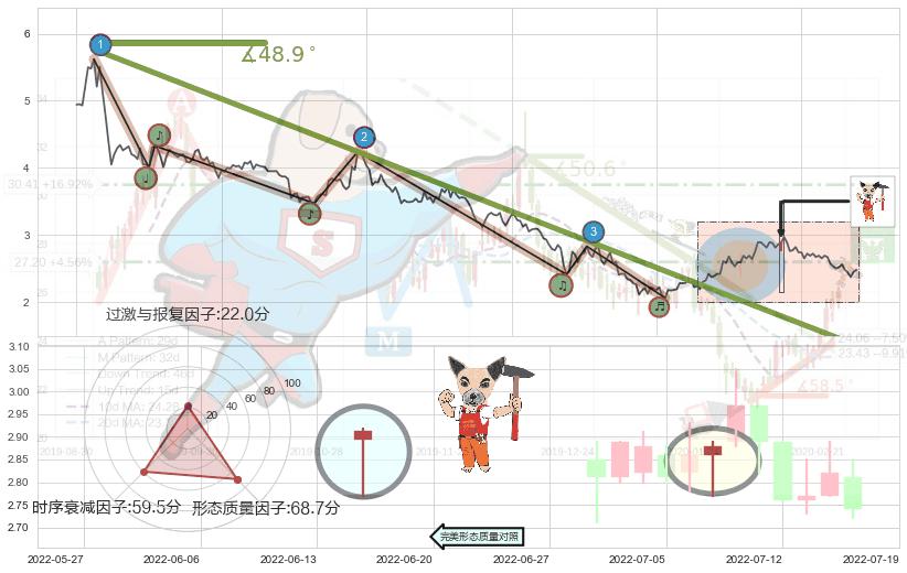 从2021-07-19至2022-06-23,共包含229个交易日,阶段股价下跌-60.80%,阶段股价变动位移路程比: 1 : 8,下跌趋势角度: 48.9