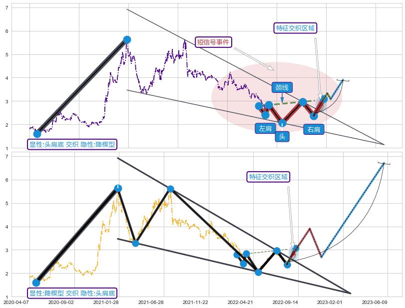 ➢ 头肩底属【短级别信号事件】降楔型属【长级别信号事件】长短周期组合信号事件, 短长事件长度比30.73%