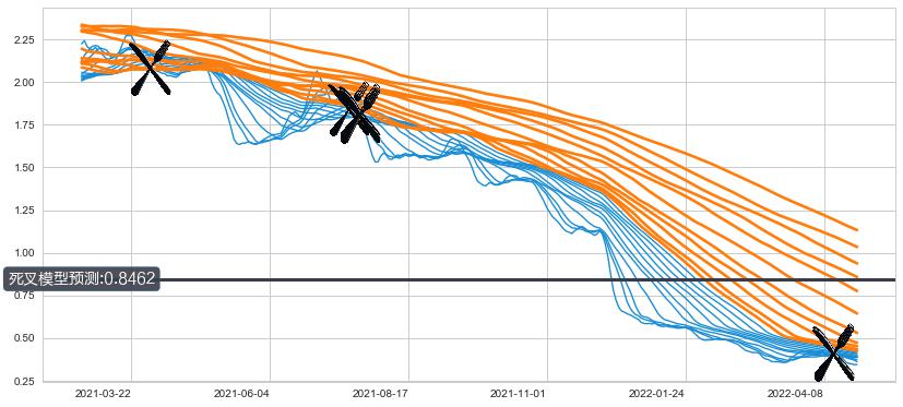 📉 多条均线基于【死叉历史模型】预测最低波谷价格的平均值: 0.8462