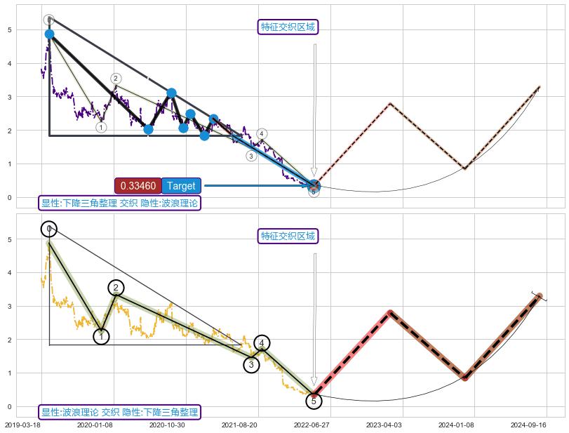 ➢ 波浪理论下跌浪:浪5反弹拐点 🔜 下降三角整理target支撑拐点上涨 综合量化分数:55.67 【偏多】