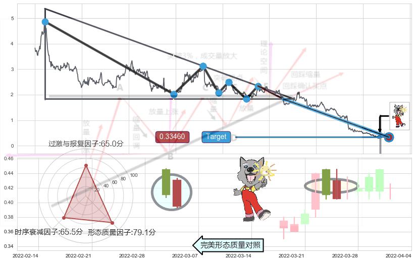 ➣ 收盘价(2022-04-20: 0.36500 )→回踩→第一根k线高点(2022-04-11: 0.39500 )