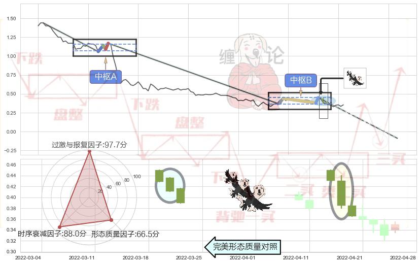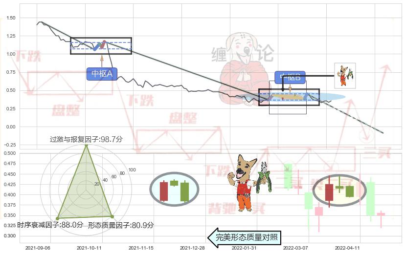 ➣ 【中枢B】:2022-03-18-2022-04-12,中枢由4笔构成,共17交易日, ZG=0.44000, ZD=0.38000