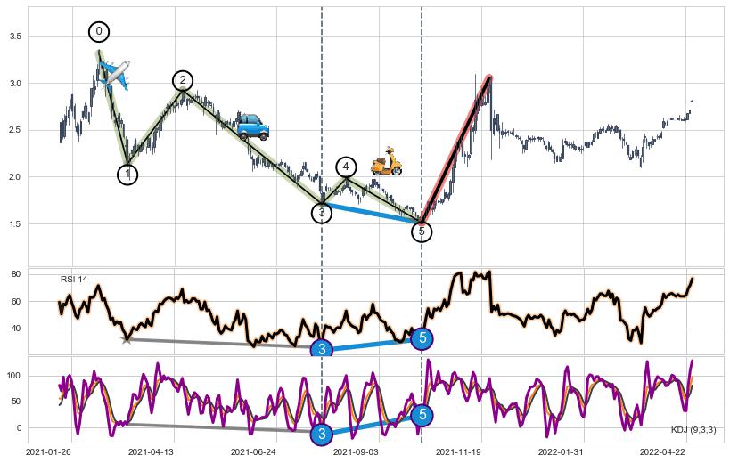 ➢ 谐波价格D点比B点低 ⤵,【KDJ】指标D点比B点高 ⤴️